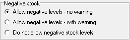 Allow negative levels - no warning   : No warning will pop-up when you want to issue stock with negative levels