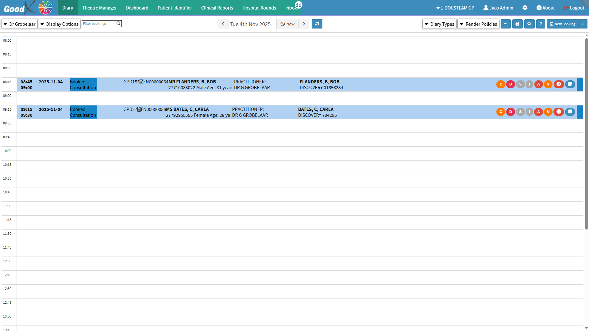 Other appointments can be made to organise the Doctor's day, these bookings are usually not linked to a Patient.