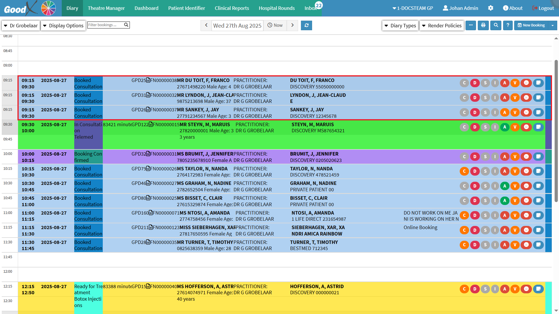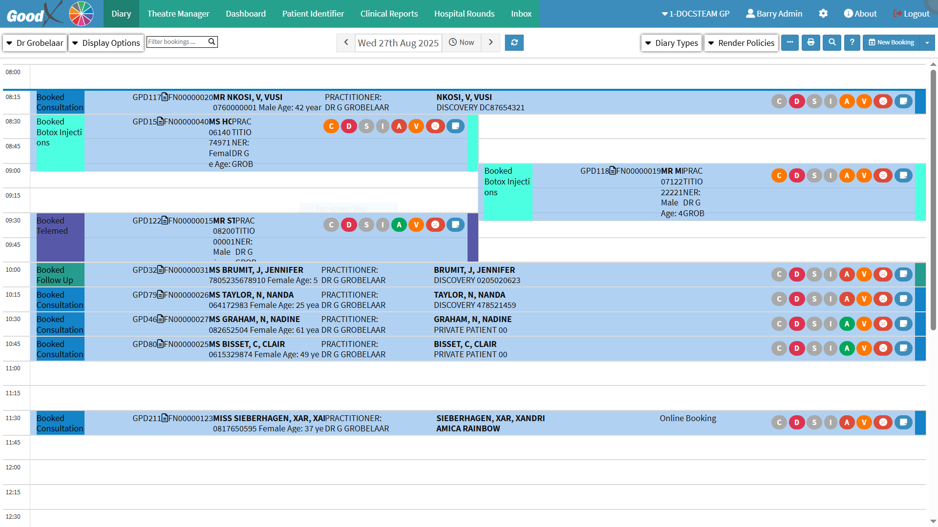 - Stacked by Type: Bookings are organised according to Booking Type, allowing similar appointments to be viewed together in a clear and structured way.