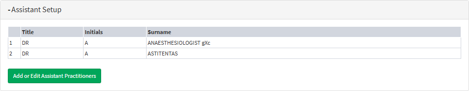 Assistants are there to support treating Practitioners, whether during procedures in the Practice or in the theatre. Assistants can conduct physical exams, diagnose and treat illnesses, order and interpret tests, counsel on preventive healthcare, assist in surgery and also write prescriptions depending on their qualifications. Adding them to the setup helps ensure accurate roles are assigned during scheduling and record-keeping, especially for modifier codes.