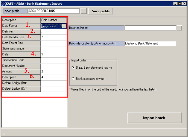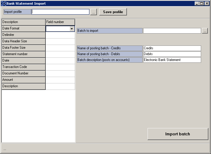 - For a New Profile, create the profile according to the format of the specific Bank CSV file.