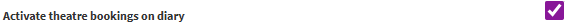 Tick the Activate Theatre Bookings on Diary checkbox to enable the Practitioner to set up and use the Theatre Manager.