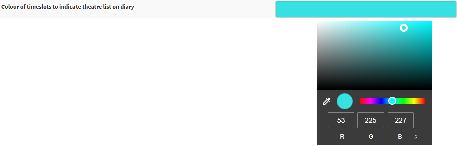 Click on the Colour of Timeslots to Indicate Theatre List on Diary field to open the colour selector and choose a preferred colour to indicate theatre bookings on the Diary.