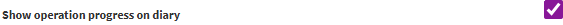 Tick the Show Operation Progress on Diary checkbox to display operation progress on the diary, showing completed items such as Cost Estimates, Patient Consent, Authorisations, and Custom Forms.