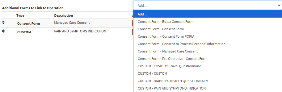 💡Please Note: The list that will appear will depend on the forms that have been set up for the Practice. For more information on how to set up the forms, please refer to the user manual: Work Flow Event Templates.