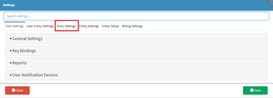 Diary Settings allow each Practitioner’s Diary to be customised to their specific needs within the Practice. This ensures accurate bookings, efficient workflows, and consistent Invoicing. Settings like Default Practitioner, Service Centre, and appointment type help streamline daily operations and improve the Patient experience. Each Diary should be set up individually to reflect the preferences and requirements of the Practitioner using it.💡Please Note: Diary Settings can be overwritten per User on User Entity Settings. For more information on the User Entity Settings screen, please refer to the user manual: User Entity Settings: Navigation and Use.