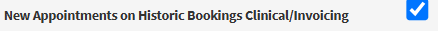 • Tick the New Appointments on Historic Bookings Clinical/Invoicing checkbox to enable you to create follow-up appointments that are linked to a previous booking.
