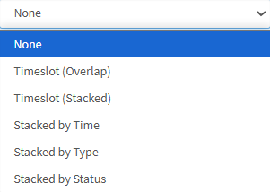 • Timeslot (Stacked): Bookings scheduled at the same time are stacked vertically, with the time slot repeated for each booking.