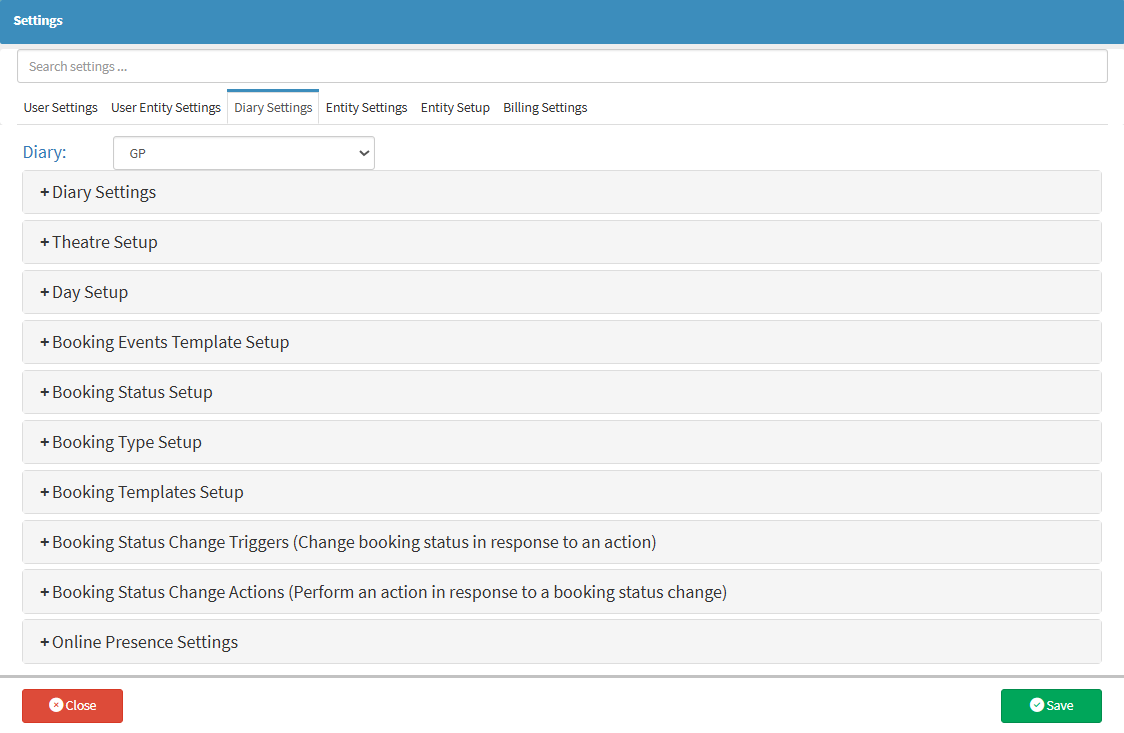 💡Please Note: Diary Settings can be overwritten per User on User Entity Settings. For more information on the User Entity Settings screen, please refer to the user manual: User Entity Settings: Navigation and Use.
