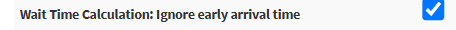 • Tick the Wait Time Calculation Ignore Early Arrival Time checkbox to ignore the arrived status of a booking and calculate the time from the booking's start time.