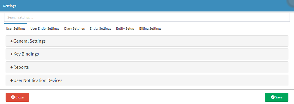 - Click on the Entity (Practice) Settings panel to expand the settings.