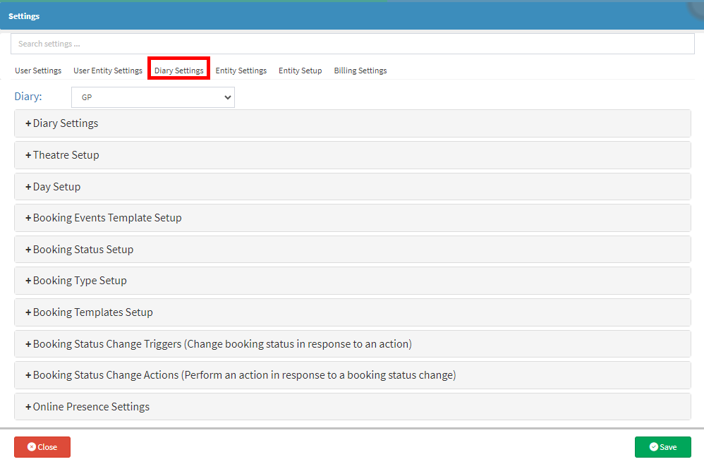 The setup of appointment types and timeslots that will be available on myGC for the Patients to book, will need to be set up for every Diary if a Practice has multiple Diaries.