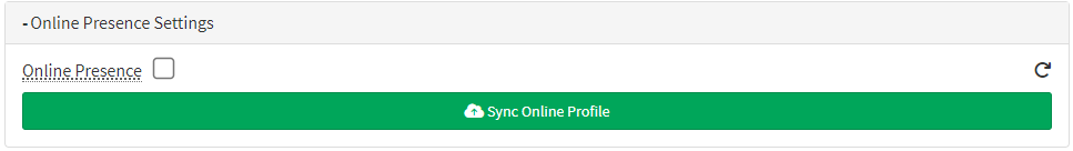 - Click on the Sync Online Profile when done and satisfied with the settings that have been set up, to synchronise the Online Presence settings with myGC.