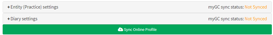 - The Online Profile will be synced automatically and if the Practice has been synced successfully, it will be indicated by the myGC Sync Status.