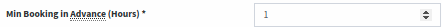 - Click on the Min Booking in Advance (Hours) field to indicate the number of hours that a booking can be scheduled before the Patient arrives.