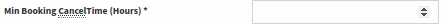 - Click on the Min Booking Cancel Time (Hours) field to enter the number of hours before the start of a booking that the Patient can cancel the booking.