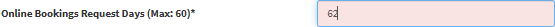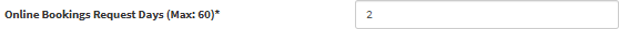 - Click on the Online Bookings Request Days field to enter the number of days that will be available to select from to make a booking on myGC.