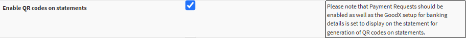 💡Please Note: Payment Requests should be activated to Enable the generation of QR Codes on Statements. The GoodX setup for banking details should also be set, for the payments to go to the correct account.