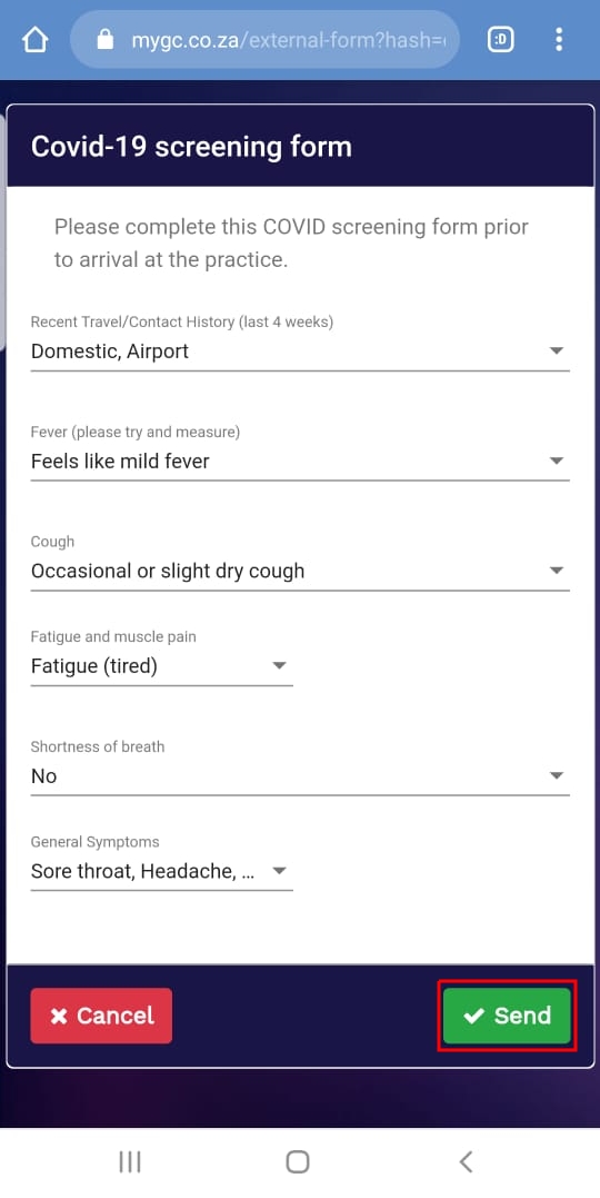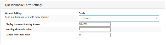 - Send questionnaire form with every booking: Select the Custom set up Form (Covid-19 Form in this case) from the drop-down list. All the available forms on the system will be on the list you can choose from.