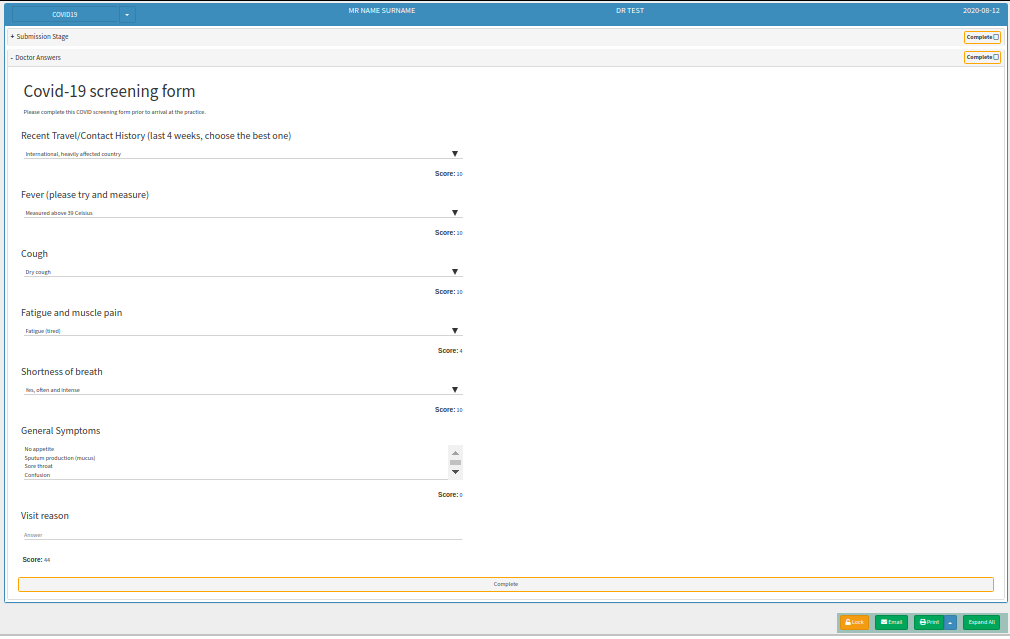 TAKE NOTE: The Doctor can enter ANY value for the warning and danger threshold. The lowest value they can enter is 0. The highest value will depend on the scoring they complete on the Questionnaire. This will/can be different for every Practice or Questionnaire.