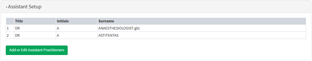 - Title: The formal title of the practitioner. In this case, it can vary (Mr, Ms, Sister, Dr, etc.) depending on the assistant you are adding.