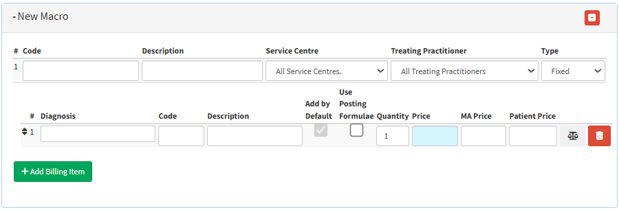 • Click on the Add Billing Item button to add a new billing item to the current macro.