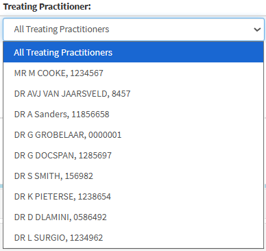 - Click on the Treating Practitioner drop-down menu.
