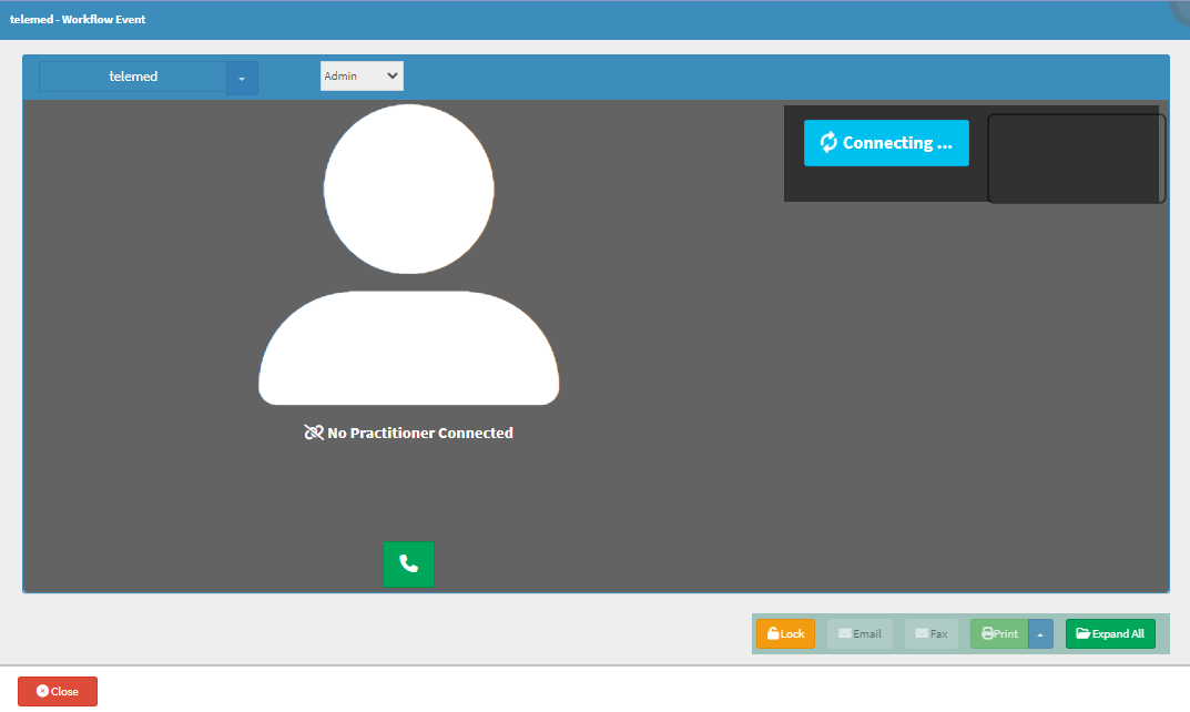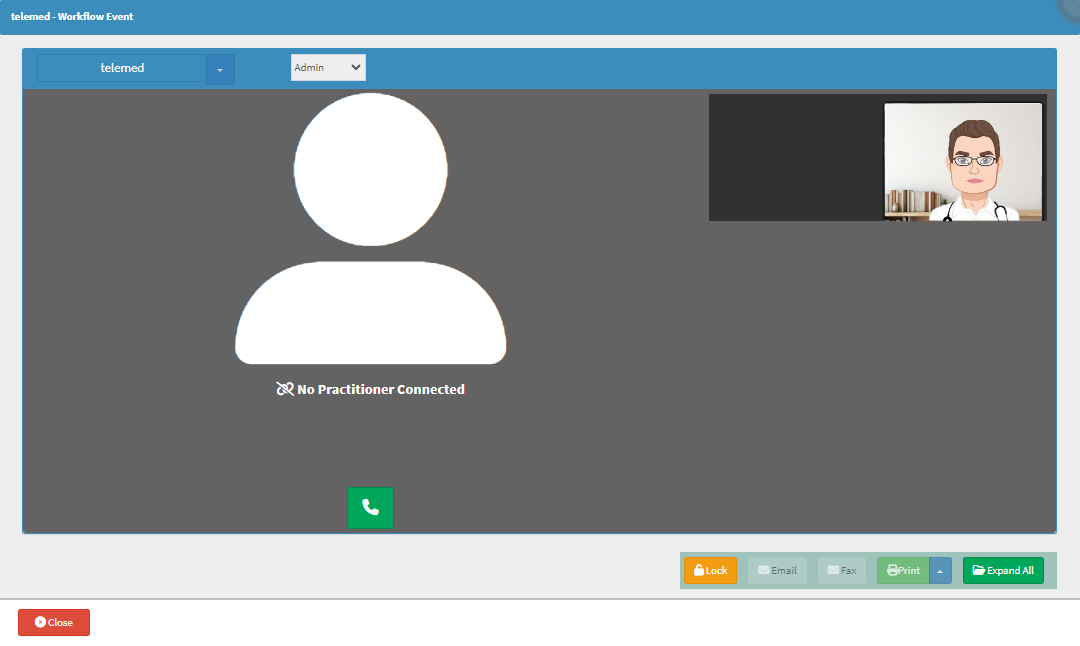 - Once the Patient has connected to the call, their video will display on the Telemed - Workflow Event screen.
