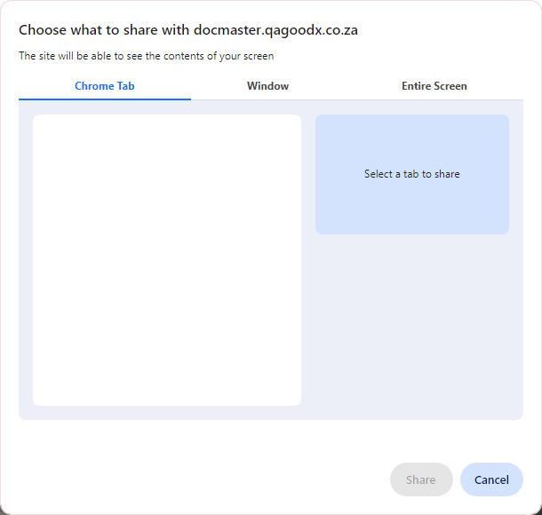 - You will have the ability to share either the entire screen, a single application, or a single Chrome tab, whichever suits your needs.