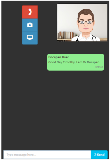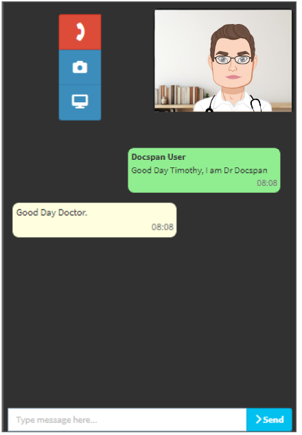 After you are done with the consultation they will hang up the call with the Patient.- Click on the Red Telephone button to end the call with the patient.
