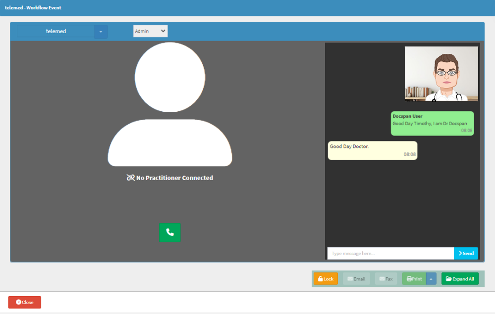 Allows the Practitioner to connect to the Patient for the remote Telehealth (Telemed) consultation.