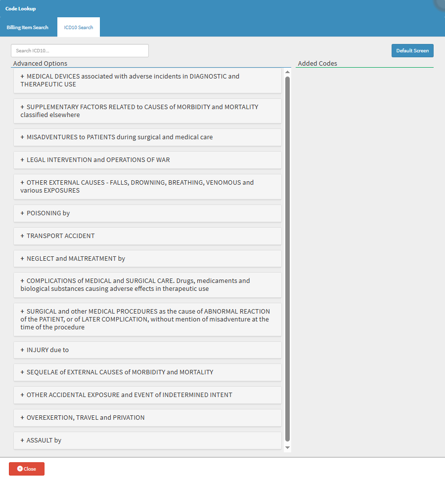- Click the Default Screen button to return to the standard ICD-10 display.