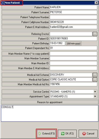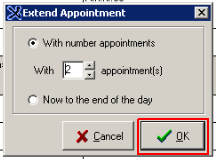 Click on Extend (F3) if you would like to extend the appointment (if the amount of time in one time slot is not enough)