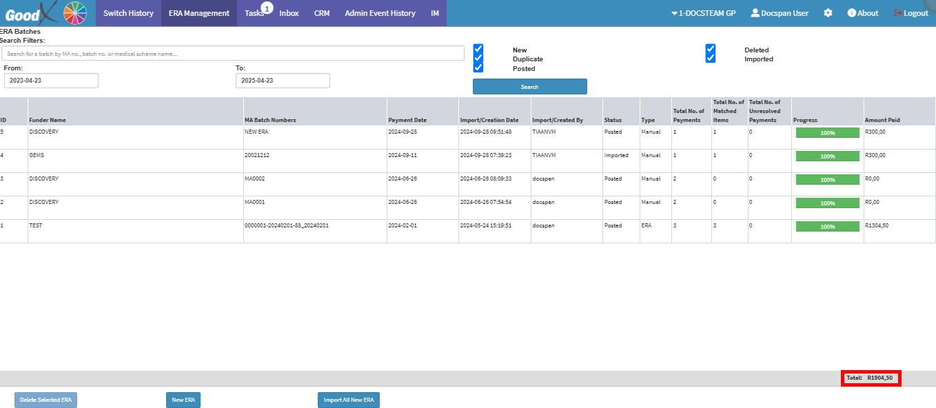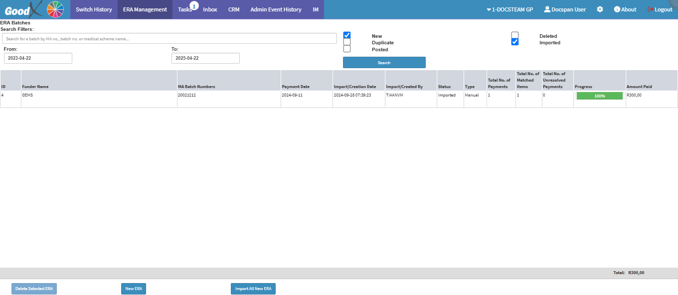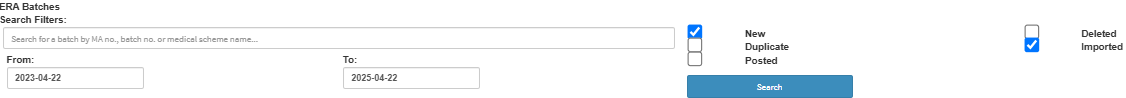 - Import/Creation Date: The Date the ERA was Imported from Medical Aid or manually captured.