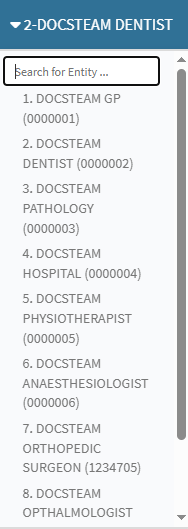 The Entity List facilitates management of multiple Practices within the same company by providing quick access to each Entity’s information. This ensures efficient switching between Practices, accurate record keeping, and streamlined workflows. By enabling seamless navigation between Entities such as General Practitioner and Dental Practices, the function supports consistent administration and enhances overall operational effectiveness.