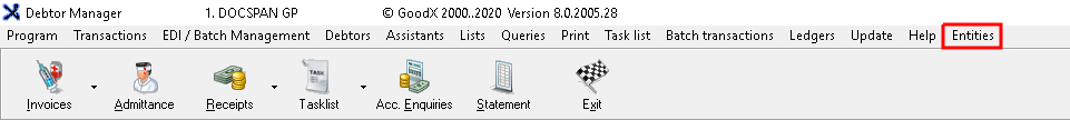 • This Module will open the default Entity that you originally logged in with, in this case, the GP Entity. You can then switch the Entity again to another one from this Module.