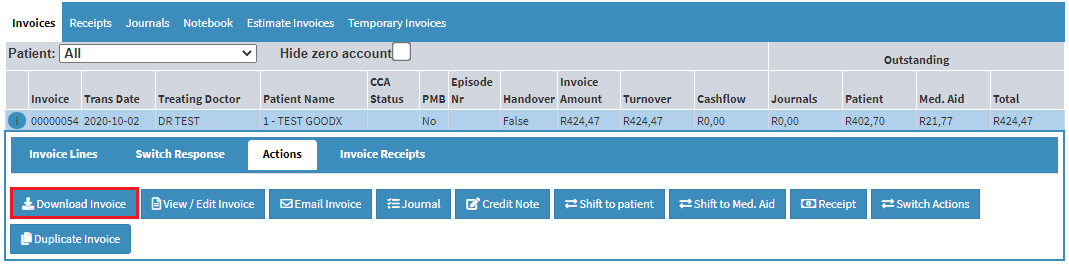 - An Invoice screen will open, click on the correct invoice, click on Download invoice