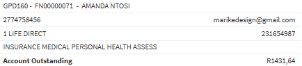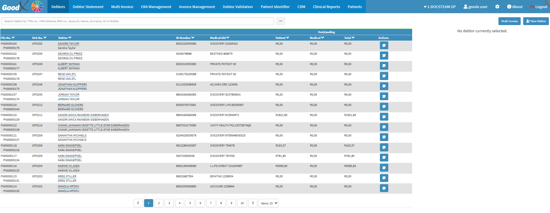 • Medical Aid Details and Medical Aid NumberThe Name and Plan number of the Medical Aid the Debtor/Patient belongs to.