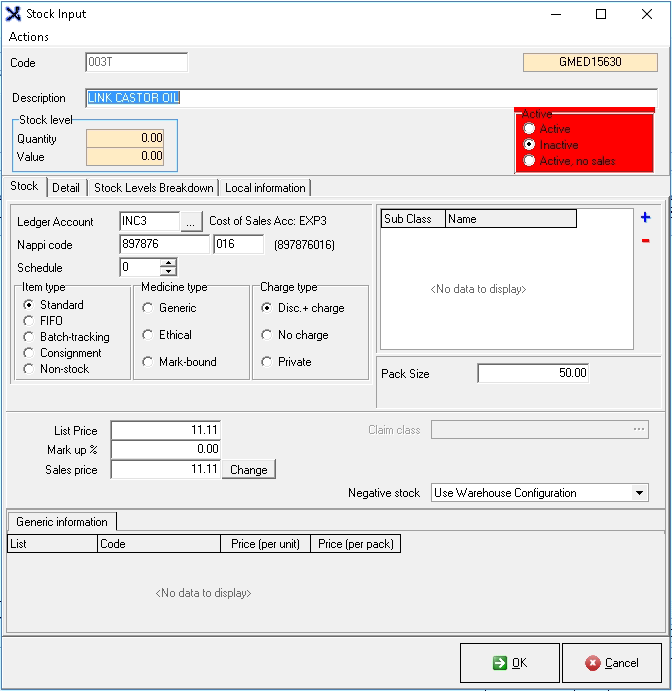 For a full explanation on the Stock Input screen please refer to the user manual: Stock Item Overview.