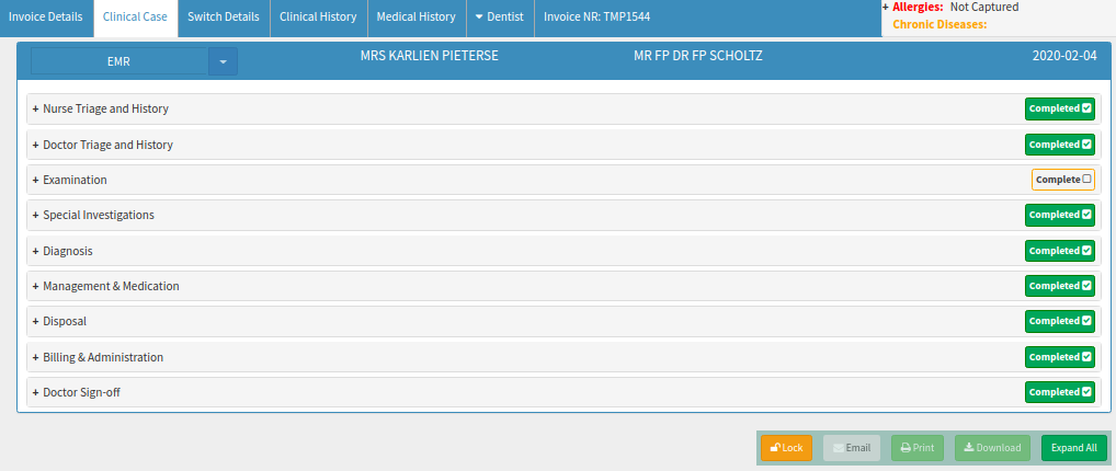 - Doctor Sign-Off: The Doctor will add his signature to the EMR Form after every section was completed.