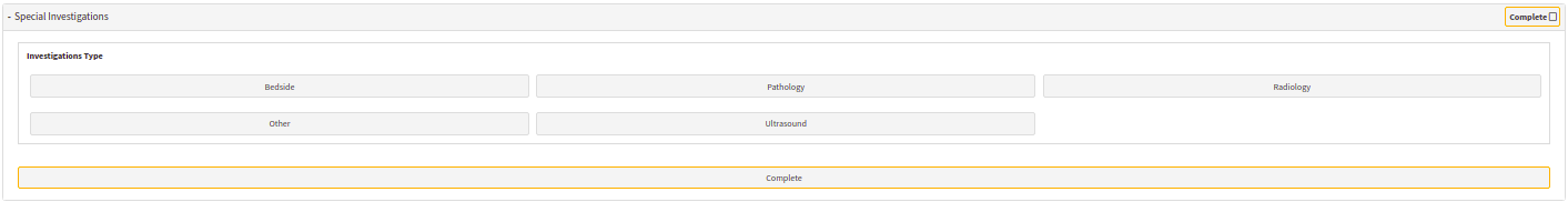 - Special Investigation: After the patient's vitals and physical examination were done the Doctor might send the patient for more tests to determine a diagnosis. In this section the Doctor can send the patient for blood works, x-rays or any other scans or tests required.