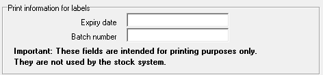 Please Note: These fields are intended for printing purposes only. They are not used by the stock system.