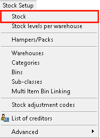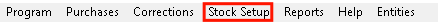- From the menubar Click on Stock Setup.