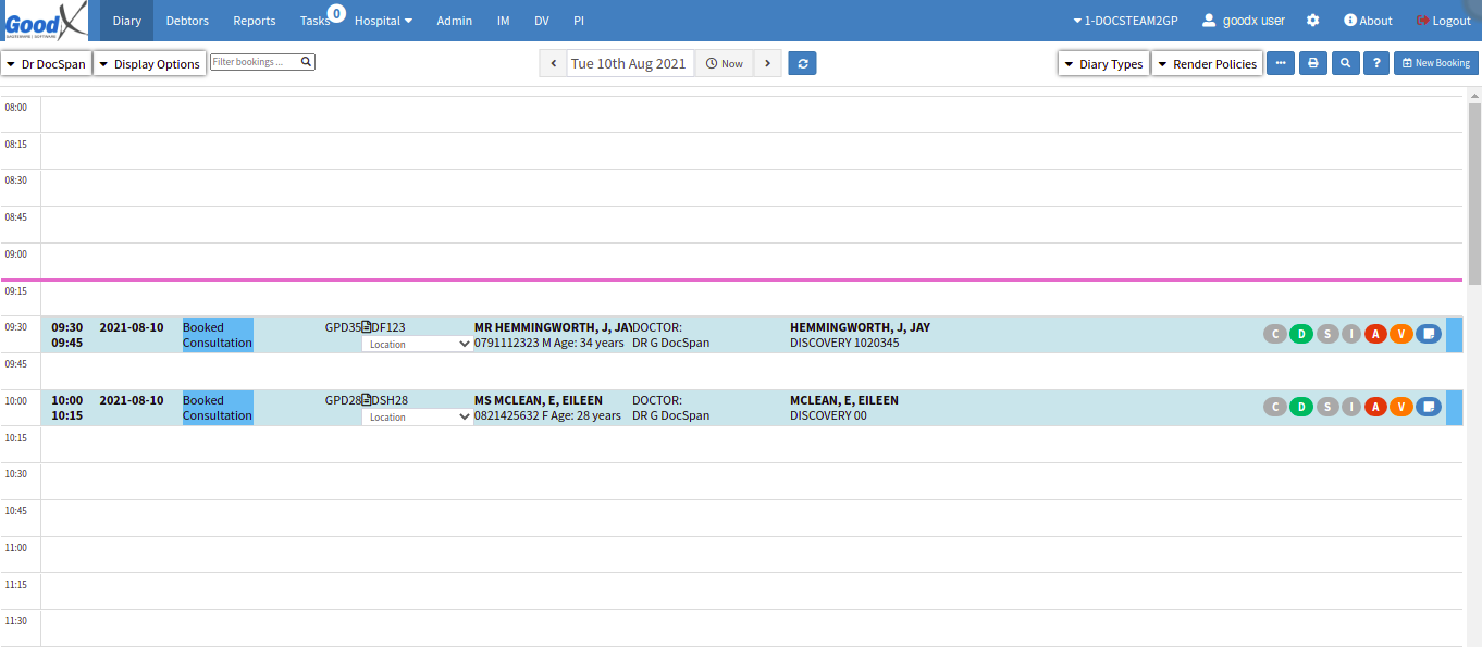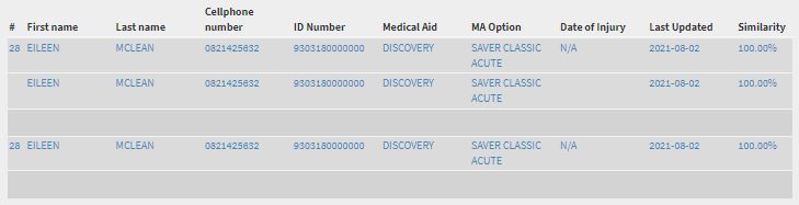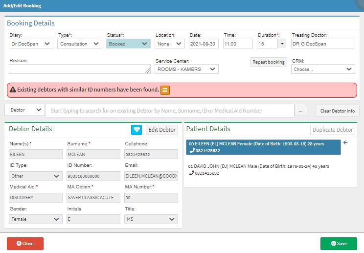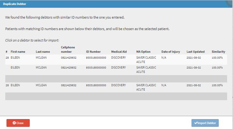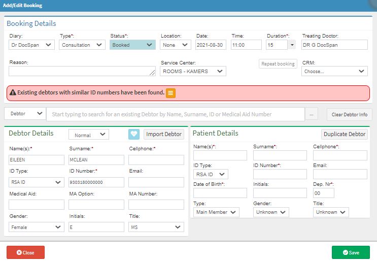 - Medical Aid: The name of the company with which the debtor whose details are similar to the debtor that the user would like to make a booking for, has medical insurance or medical aid.