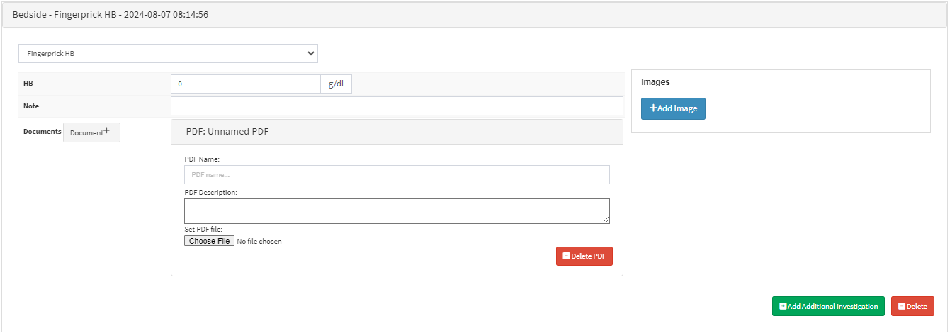 - Click on the Add Additional Investigation button to add a new Bedside Investigation to the form.