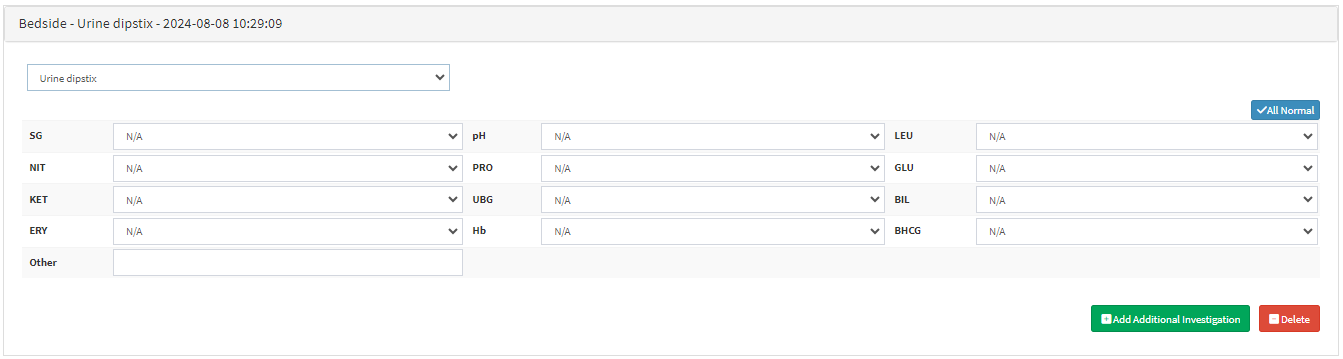 - Click on the Other field to enter any other information regarding the findings of the Urine Dipstick.