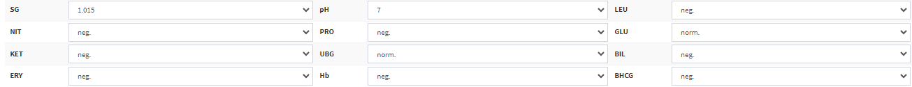 - Click on the UBG drop-down menu to select the relevant result from measuring the amount of urobilinogen in the urine.