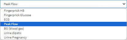- Click on the Test drop-down menu and select Fingerprick Glucose.