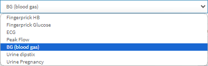 - Click on the Test drop-down menu and select BG (Blood Gas).
