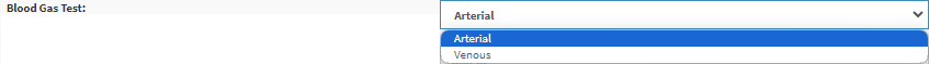 - Click on the Blood Gas Test drop-down menu to select how the test was conducted.
